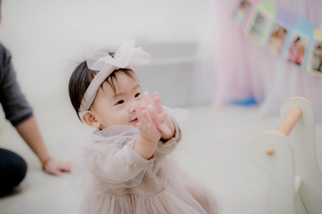 一歲寶寶對陌生環境比較敏感,在家裡拍攝抓周寫真時,寶寶比較容易保持自然表情,也比較不容易哭鬧。